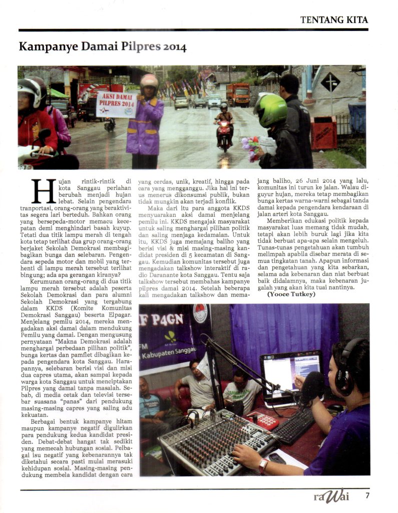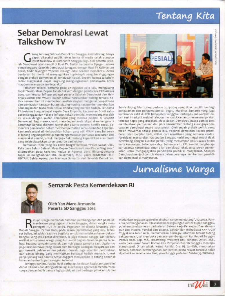 Rawai; Penjaring Informasi & Inspirasi Sekolah Demokrasi Sanggau 2011-2014 – ELPAGAR